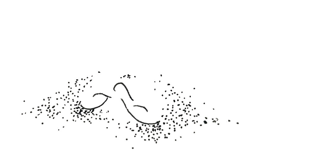 そのように一度振った液を鎮静させたとき、クリアに「わかる」ことがあります。この「わかる」には理論的な文脈はない、突飛な一点なのだと思います。社会的に必要であれば線のようなものは後から付加すればよろしい。